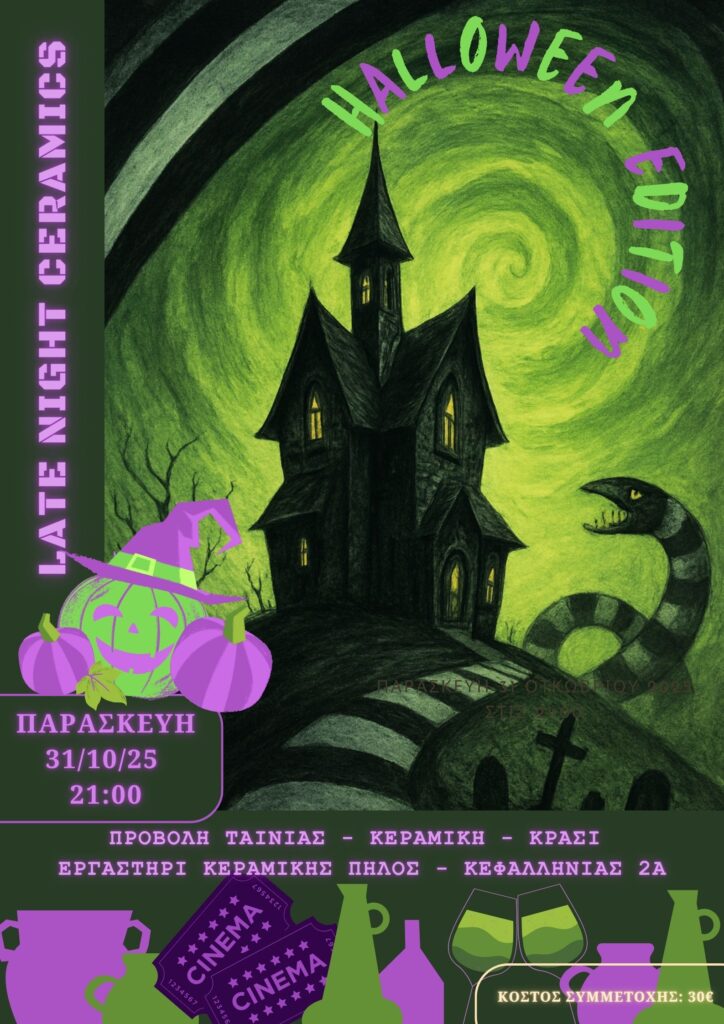 Το Late Night Ceramics συνδυάζει την κεραμική με την αγάπη μας για το σινεμά. Με αφορμή την εκάστοτε προβολή, δημιουργούμε κεραμικά αντικείμενα που μας κάνουν να χαμογελάμε. Κατάλληλο για λάτρες του σινεμά!